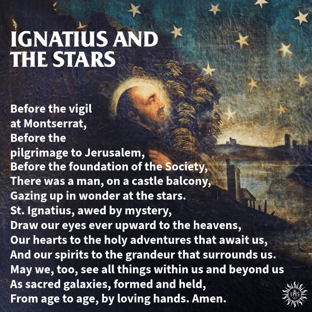 One of my favorite details from St. Ignatius’ life is that he loved to gaze at the stars. His friends reported finding him on rooftops or high places, looking up at the sky, often with tears in his eyes.