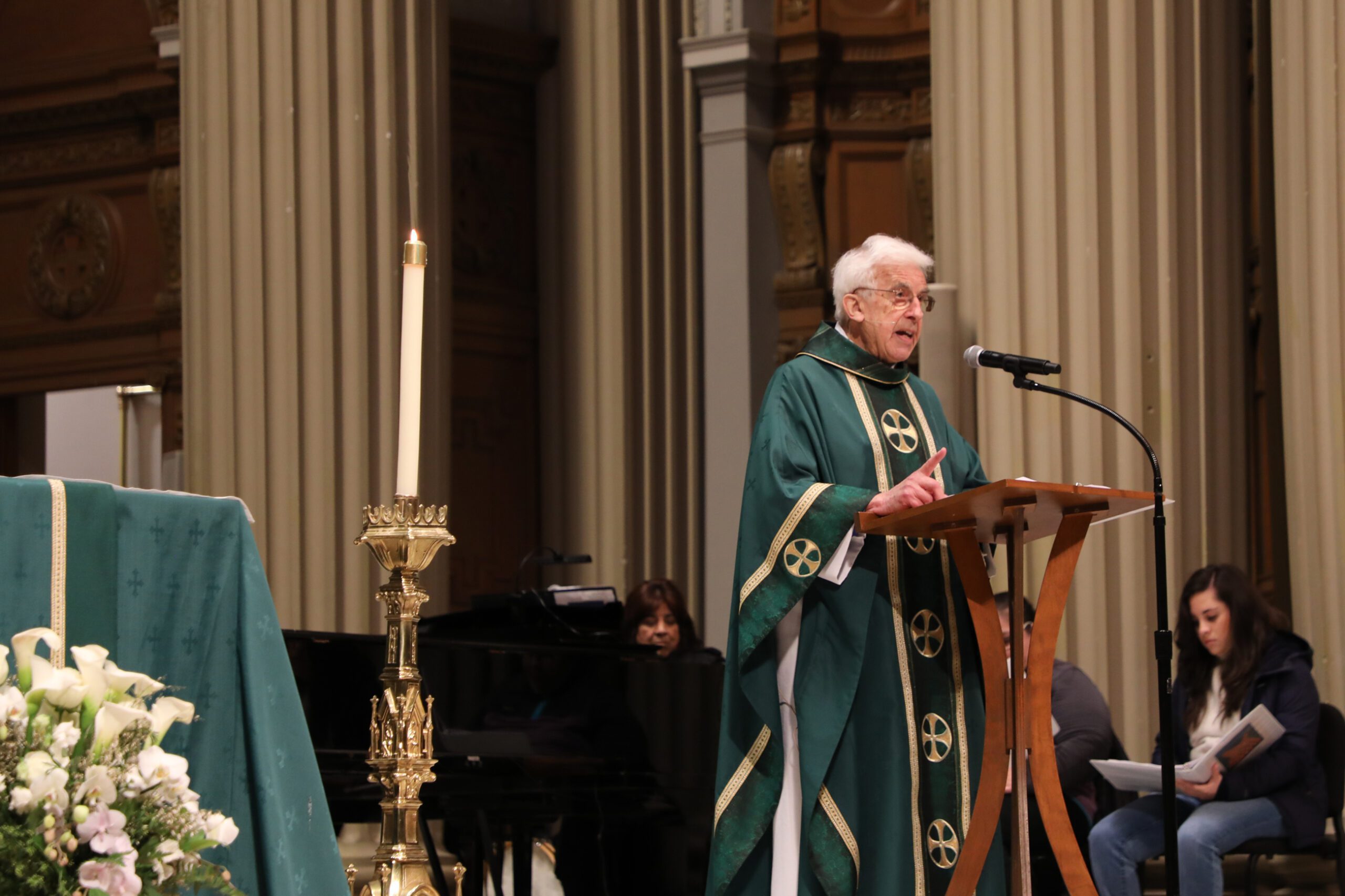 Recognizable by a swooping tuft of white hair and rimless rectangular glasses, Fr. Baumann elicits reverence from those who know him. The day after I interviewed him, we both attended a community organizing conference at the University of San Francisco. Although his legacy partially inspired the conference, Fr. Baumann tucked into the less-coveted seats typically left for latecomers. Still, people flocked to him — from old friends and colleagues to strangers who professed their admiration for his work. A patrician set to his shoulders, he leaned in with his whole body to listen.