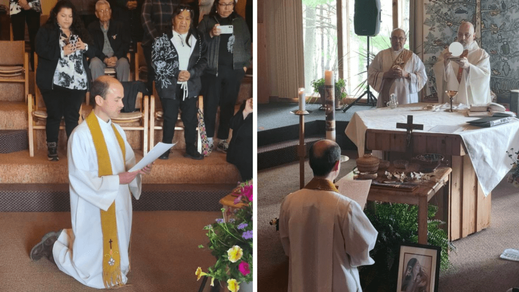 Fr. Paul Robson, SJ, pronounced final vows in the Society of Jesus on May 24, 2025, at the Anishinabe Spiritual Centre in Espanola, Ontario. Fr. Robson is pastor of Holy Cross Mission in Wiikwemkoong, Ontario.