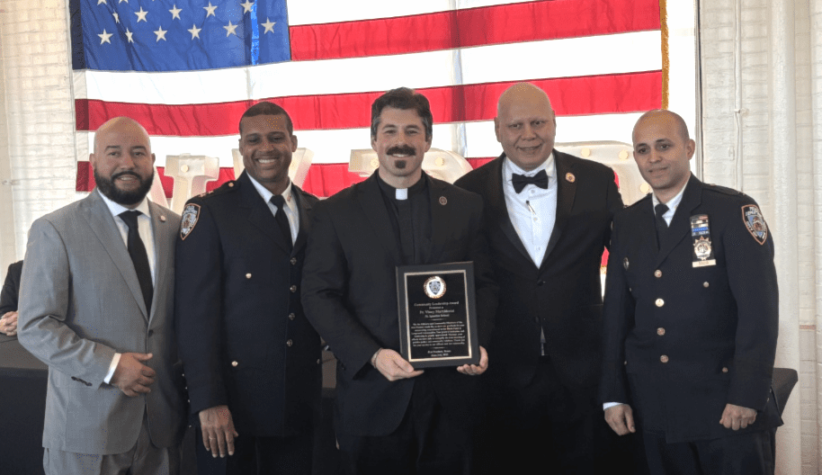 On June 3, Fr. Vinny Marchionni, SJ, received the Community Leadership Award from the NYPD 41st Precinct for “unwavering commitment to the Hunts Point and Longwood communities” in the Bronx, New York. The award is given to community members like clergy, business and nonprofit leaders who foster positive relationships between the neighborhood and police.
