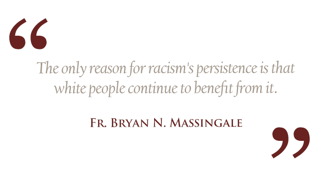 Fr. Bryan N. Massingale, a black priest and professor at Fordham University, identifies one key truth that white Catholics must unpack: “The only reason for racism’s persistence is that white people continue to benefit from it.”