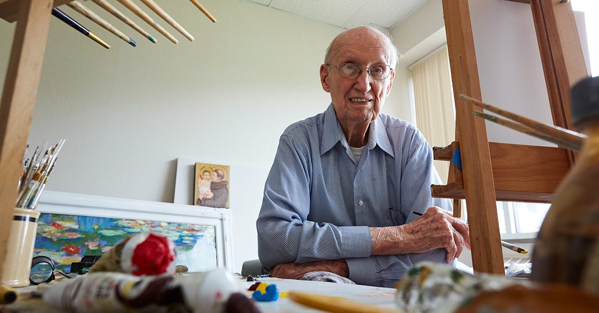 Br. James Small, SJ, of the Midwest Jesuits, celebrated his 103rd birthday on January 10, 2025. Br. Small, the oldest Midwest Jesuit, spent most of his Jesuit life serving at Loyola Academy in Wilmette, Illinois, and painted whenever he had a spare moment. Over the course of several decades at Loyola, he dedicated his considerable skills as a painter to raising more than a million dollars for tuition assistance. Read more.